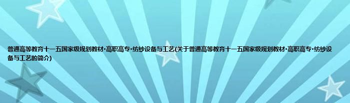 本文关于普通高等教育十一五国家级规划教材·高职高专·纺纱设备与工艺的简介就讲解完毕,希望对大家有所帮助。