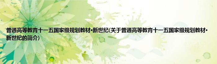 本文关于普通高等教育十一五国家级规划教材·新世纪的简介就讲解完毕,希望对大家有所帮助。