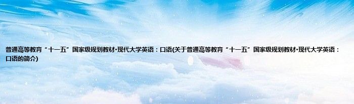 本文关于普通高等教育“十一五”国家级规划教材·现代大学英语:口语的简介就讲解完毕,希望对大家有所帮助。