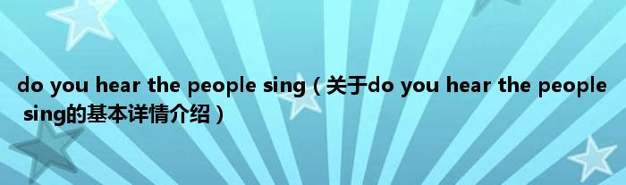 本文关于do you hear the people sing的基本详情介绍就讲解完毕,希望对大家有所帮助。