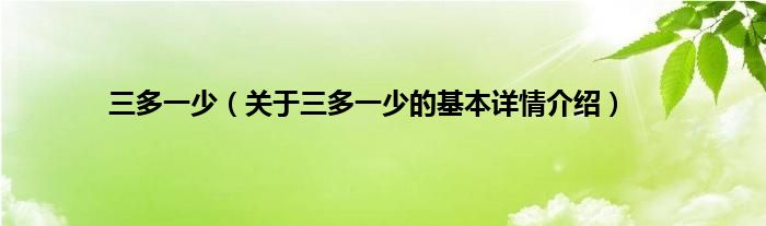 大家好我是小蝌蚪,三多一少,关于三多一少的基本详情介绍很多人还不知道,那么现在让我们一起来看看吧!