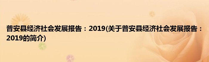 本文关于普安县经济社会发展报告:2019的简介就讲解完毕,希望对大家有所帮助。