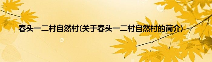 本文关于春头一二村自然村的简介就讲解完毕,希望对大家有所帮助。