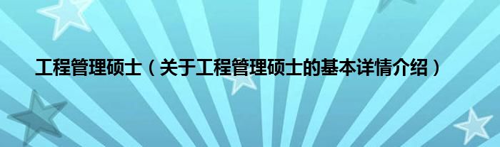 本文关于工程管理硕士的基本详情介绍就讲解完毕,希望对大家有所帮助。