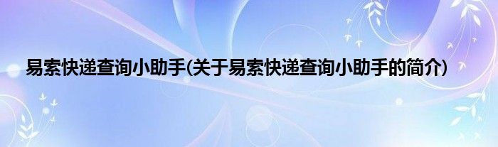 易索快递查询小助手(关于易索快递查询小助手的简介)