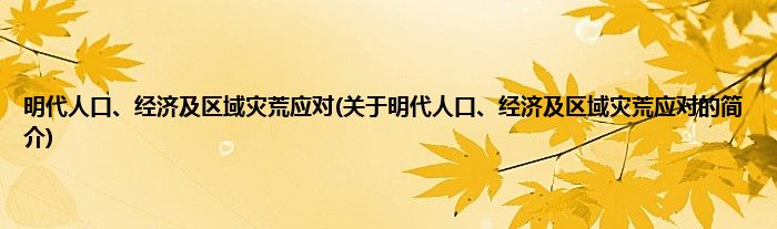 本文关于明代人口、经济及区域灾荒应对的简介就讲解完毕,希望对大家有所帮助。