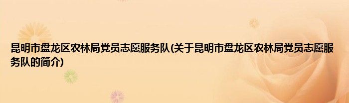 本文关于昆明市盘龙区农林局党员志愿服务队的简介就讲解完毕,希望对大家有所帮助。