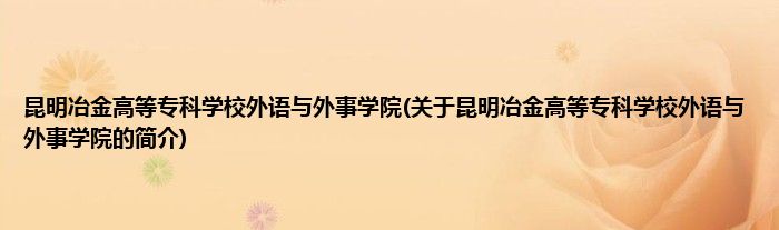 本文关于昆明冶金高等专科学校外语与外事学院的简介就讲解完毕,希望对大家有所帮助。