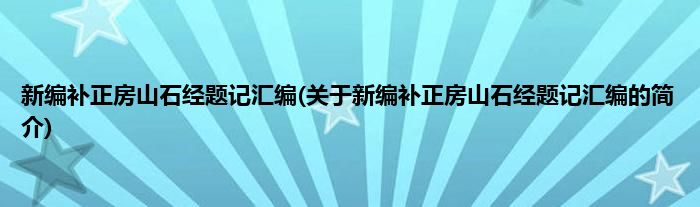 本文关于新编补正房山石经题记汇编的简介就讲解完毕,希望对大家有所帮助。