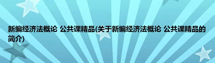 大家好,新编经济法概论 公共课精品,关于新编经济法概论 公共课精品的简介很多人还不知道,现在让我们一起来看看吧!