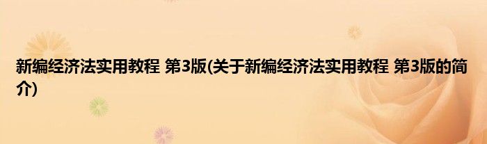 本文关于新编经济法实用教程 第3版的简介就讲解完毕,希望对大家有所帮助。