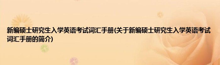 本文关于新编硕士研究生入学英语考试词汇手册的简介就讲解完毕,希望对大家有所帮助。