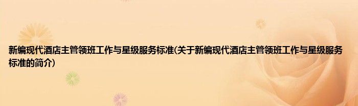 本文关于新编现代酒店主管领班工作与星级服务标准的简介就讲解完毕,希望对大家有所帮助。