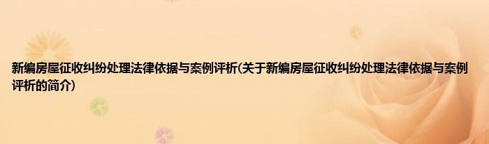 本文关于新编房屋征收纠纷处理法律依据与案例评析的简介就讲解完毕,希望对大家有所帮助。