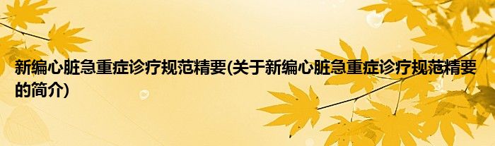 本文关于新编心脏急重症诊疗规范精要的简介就讲解完毕,希望对大家有所帮助。