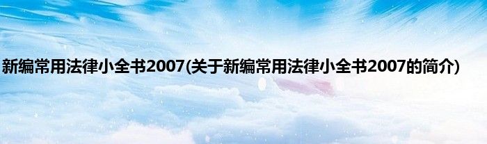 本文关于新编常用法律小全书2007的简介就讲解完毕,希望对大家有所帮助。
