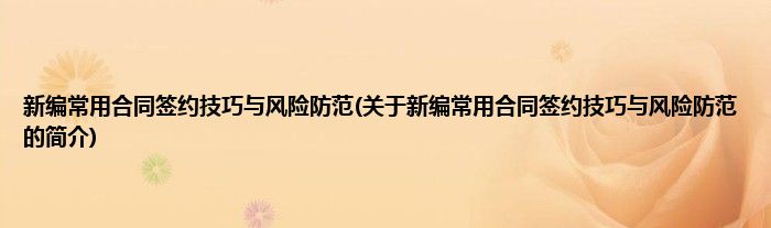 本文关于新编常用合同签约技巧与风险防范的简介就讲解完毕,希望对大家有所帮助。