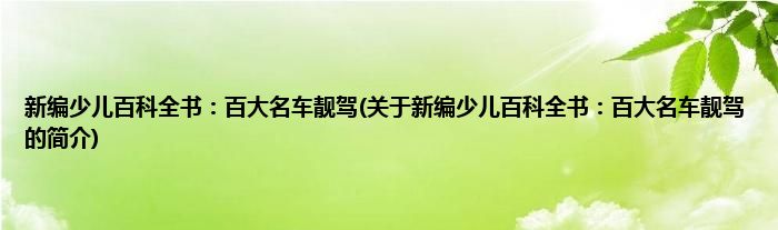 本文关于新编少儿百科全书:百大名车靓驾的简介就讲解完毕,希望对大家有所帮助。
