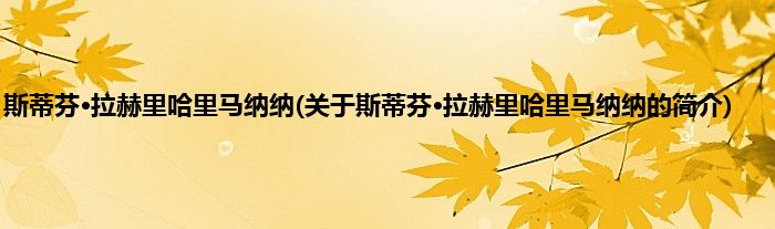 大家好,斯蒂芬·拉赫里哈里马纳纳,关于斯蒂芬·拉赫里哈里马纳纳的简介很多人还不知道,现在让我们一起来看看吧!