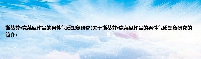 大家好,斯蒂芬·克莱恩作品的男性气质想象研究,关于斯蒂芬·克莱恩作品的男性气质想象研究的简介很多人还不知道,现在让我们一起来看看吧!