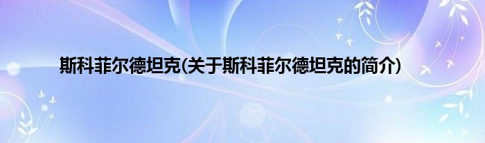 本文关于斯科菲尔德坦克的简介就讲解完毕,希望对大家有所帮助。