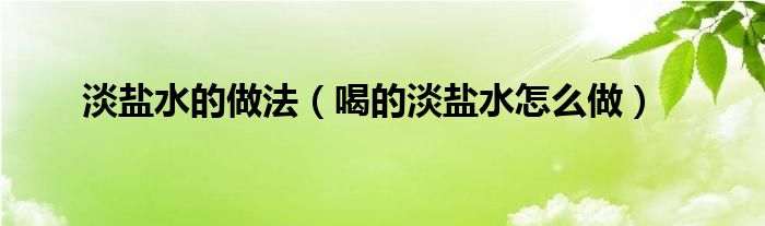 一、 喝的淡盐水怎么做