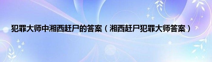 大家好,精选小编来为大家解答以上问题。犯罪大师中湘西赶尸的答案,湘西赶尸犯罪大师答案很多人还不知道,现在让我们一起来看看吧!