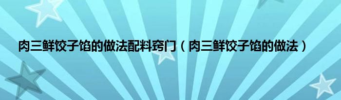 大家好,小科来为大家解答以上问题。肉三鲜饺子馅的做法配料窍门,肉三鲜饺子馅的做法很多人还不知道,现在让我们一起来看看吧!