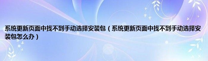 大家好,精选小编来为大家解答以上问题。系统更新页面中找不到手动选择安装包,系统更新页面中找不到手动选择安装包怎么办很多人还不知道,现在让我们一起来看看吧!