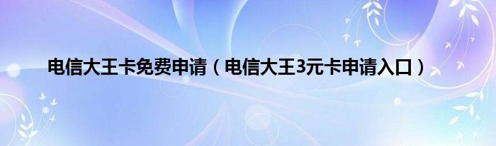 大家好,小常来为大家解答以上问题。电信大王卡免费申请,电信大王3元卡申请入口很多人还不知道,现在让我们一起来看看吧!