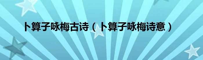 大家好,小常来为大家解答以上问题。卜算子咏梅古诗,卜算子咏梅诗意很多人还不知道,现在让我们一起来看看吧!