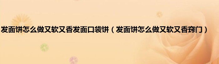 一、 发面饼怎么做又软又香窍门