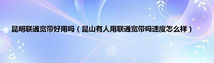 大家好,小常来为大家解答以上问题。昆明联通宽带好用吗,昆山有人用联通宽带吗速度怎么样很多人还不知道,现在让我们一起来看看吧!