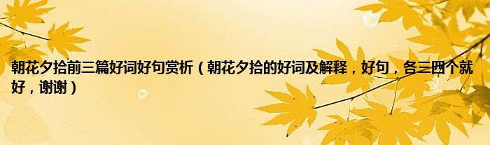大家好,小常来为大家解答以上问题。朝花夕拾前三篇好词好句赏析,朝花夕拾的好词及解释,好句,各三四个就好,谢谢很多人还不知道,现在让我们一起来看看吧!