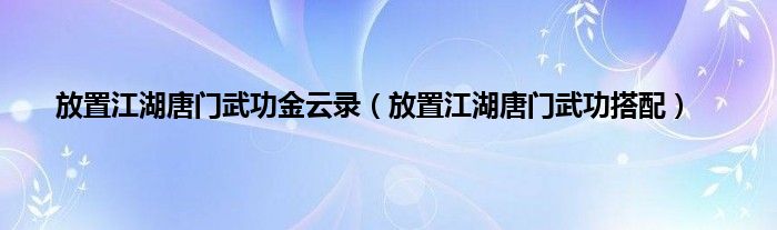 大家好,小常来为大家解答以上问题。放置江湖唐门武功金云录,放置江湖唐门武功搭配很多人还不知道,现在让我们一起来看看吧!