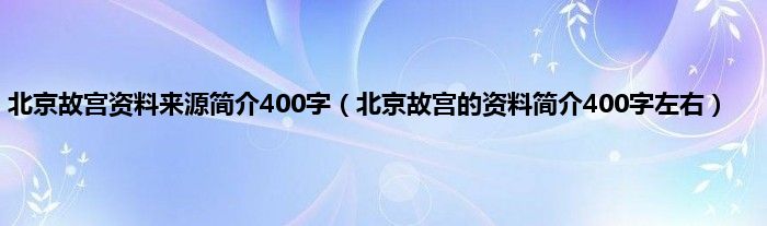 大家好,小常来为大家解答以上问题。北京故宫资料来源简介400字,北京故宫的资料简介400字左右很多人还不知道,现在让我们一起来看看吧!