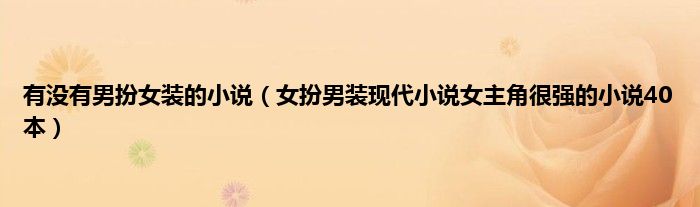 大家好,小常来为大家解答以上问题。有没有男扮女装的小说,女扮男装现代小说女主角很强的小说40本很多人还不知道,现在让我们一起来看看吧!