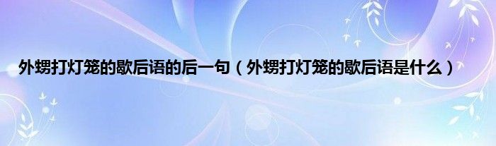 外甥打灯笼的歇后语是什么:外甥打灯笼————照旧(舅)关于外甥的歇后语如下:舅舅揍外甥————白挨外婆待外甥————诚心实意外甥不在家————有救(舅)外甥打阿舅————公事公办(比喻不存私心,该怎么办就怎么办。