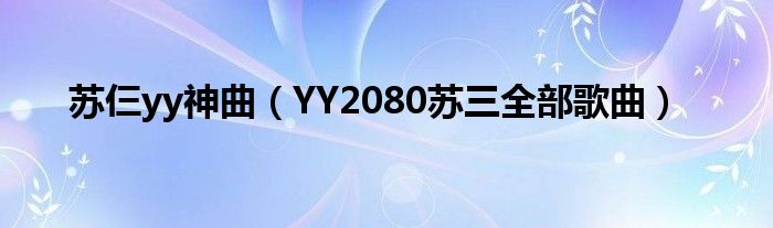 大家好,小常来为大家解答以上问题。苏仨yy神曲,YY2080苏三全部歌曲很多人还不知道,现在让我们一起来看看吧!