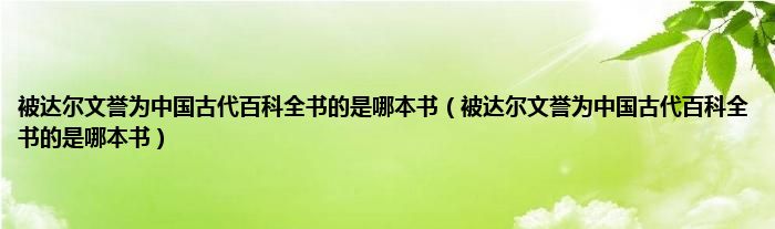 大家好,小科来为大家解答以上问题。被达尔文誉为中国古代百科全书的是哪本书,被达尔文誉为中国古代百科全书的是哪本书很多人还不知道,现在让我们一起来看看吧!