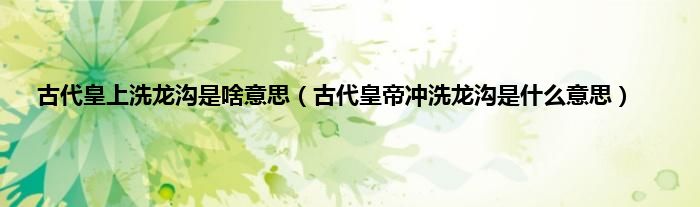 大家好,小常来为大家解答以上问题。古代皇上洗龙沟是啥意思,古代皇帝冲洗龙沟是什么意思很多人还不知道,现在让我们一起来看看吧!