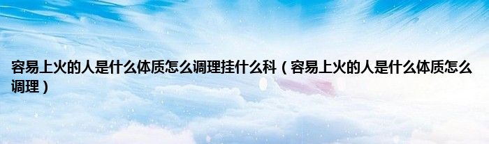 大家好,小常来为大家解答以上问题。容易上火的人是什么体质怎么调理挂什么科,容易上火的人是什么体质怎么调理很多人还不知道,现在让我们一起来看看吧!