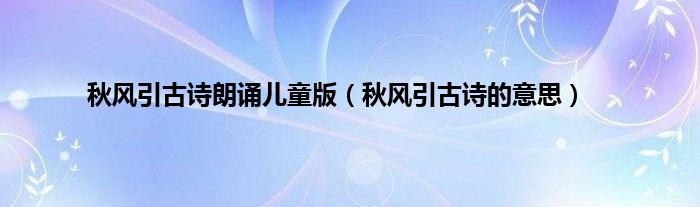 大家好,小常来为大家解答以上问题。秋风引古诗朗诵儿童版,秋风引古诗的意思很多人还不知道,现在让我们一起来看看吧!