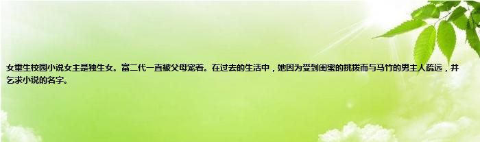 大家好,小常来为大家解答以上问题。女重生校园小说女主是独生女。富二代一直被父母宠着。在过去的生活中,她因为受到闺蜜的挑拨而与马竹的男主人疏远,并乞求小说的名字。很多人还不知道,现在让我们一起来看看吧!