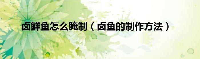 大家好,小常来为大家解答以上问题。卤鲜鱼怎么腌制,卤鱼的制作方法很多人还不知道,现在让我们一起来看看吧!