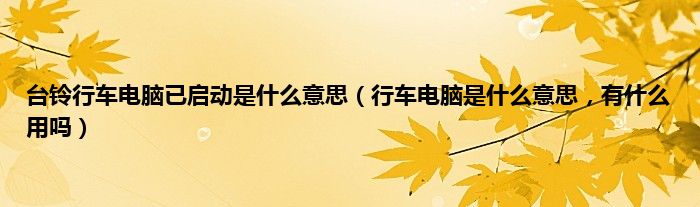 大家好,小常来为大家解答以上问题。台铃行车电脑已启动是什么意思,行车电脑是什么意思,有什么用吗很多人还不知道,现在让我们一起来看看吧!