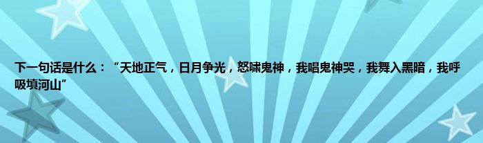 大家好,小常来为大家解答以上问题。下一句话是什么:“天地正气,日月争光,怒啸鬼神,我唱鬼神哭,我舞入黑暗,我呼吸填河山”很多人还不知道,现在让我们一起来看看吧!