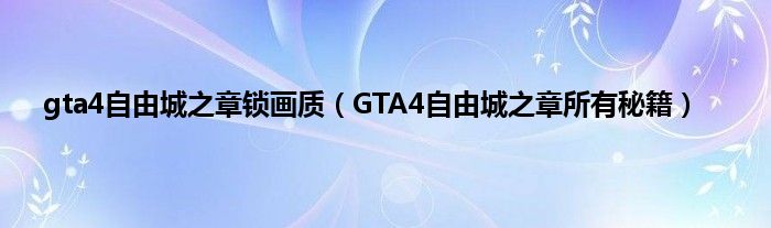 大家好,小常来为大家解答以上问题。gta4自由城之章锁画质,GTA4自由城之章所有秘籍很多人还不知道,现在让我们一起来看看吧!