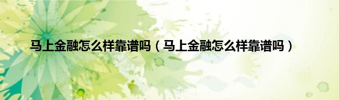 马上金融怎么样靠谱吗(马上金融怎么样靠谱吗)