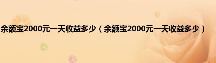 大家好,小常来为大家解答以上问题。余额宝2000元一天收益多少,余额宝2000元一天收益多少很多人还不知道,现在让我们一起来看看吧!